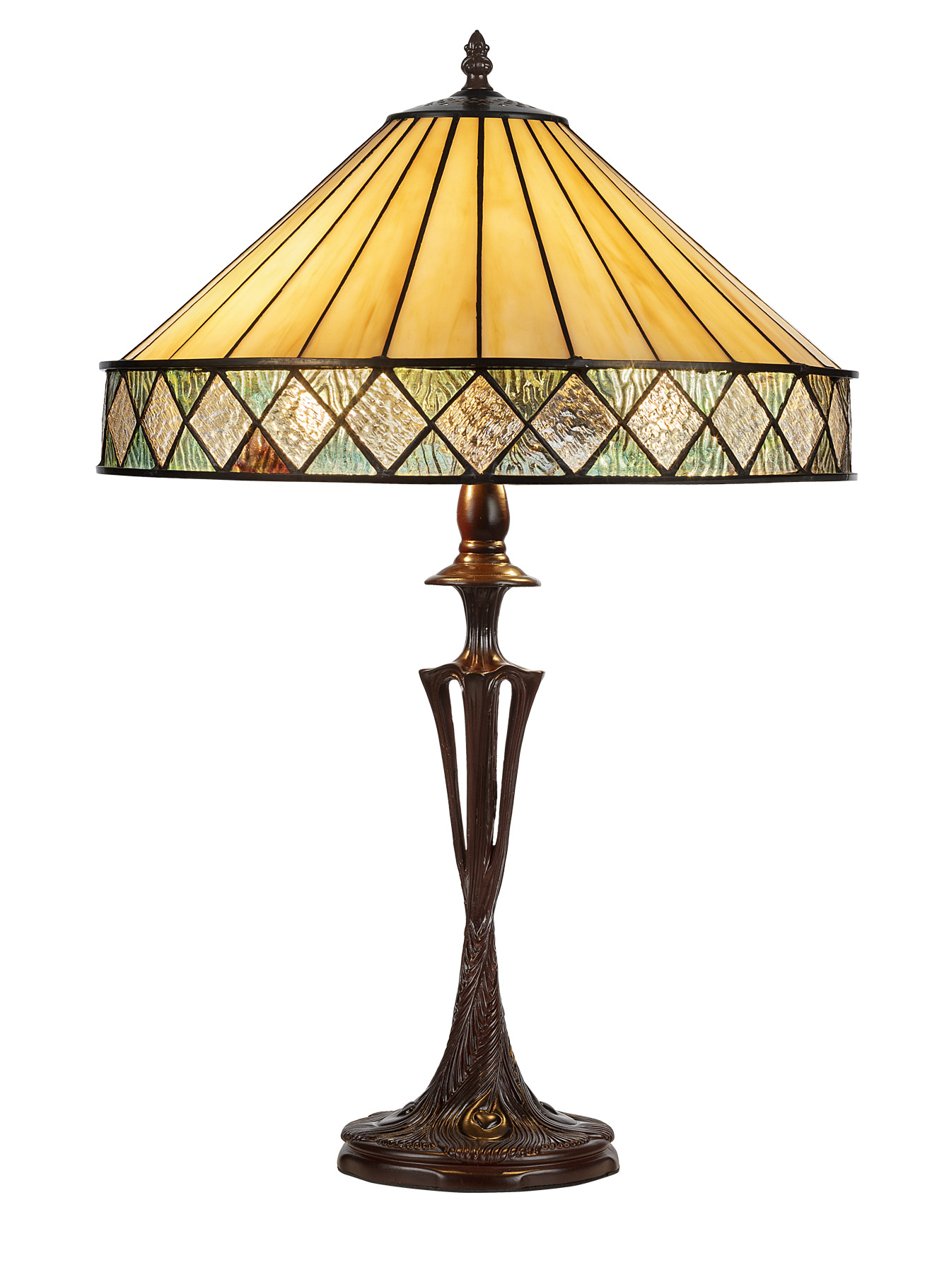 Para fabricar esta lámpara Tiffany se han utilizado piezas de vidrio americano de la mejor calidad. Tanto los colores como el diseño respetan la tradición de los Tiffanys más exclusivos y darán a su interior un tono cálido y colorido.